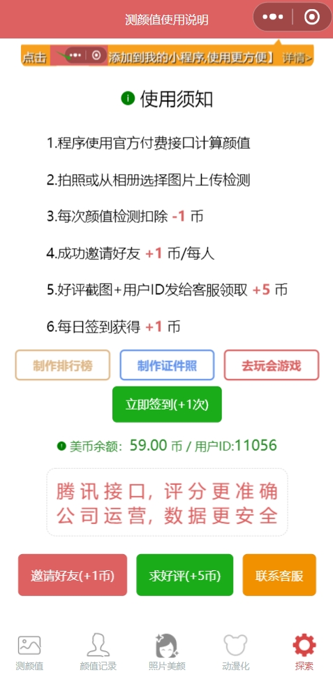 程序使用腾讯官方面部检测收费接口,数据权威稳定
