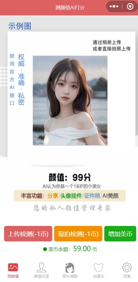 通过AI接口进行颜值打分,测颜值,测年龄,无广告免费颜值测试!